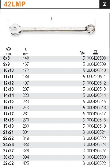 BETA KLUCZ PŁASKO-OCZKOWY POLEROWANY, TYP DŁUGI 10mm