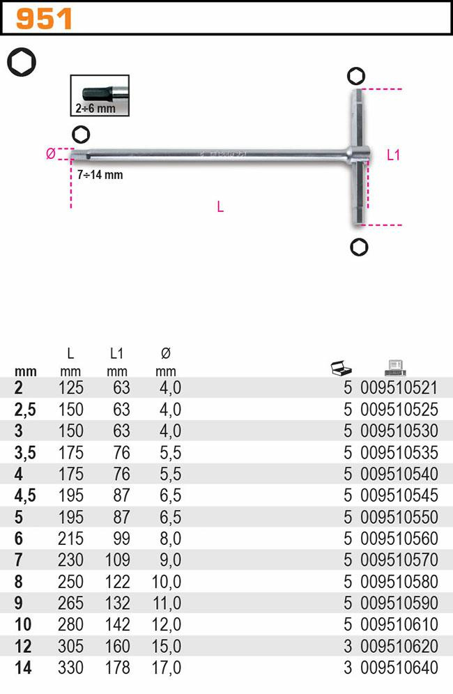 BETA KLUCZ TRZPIENIOWY TYPU T, SZEŚCIOKĄTNNY 7mm