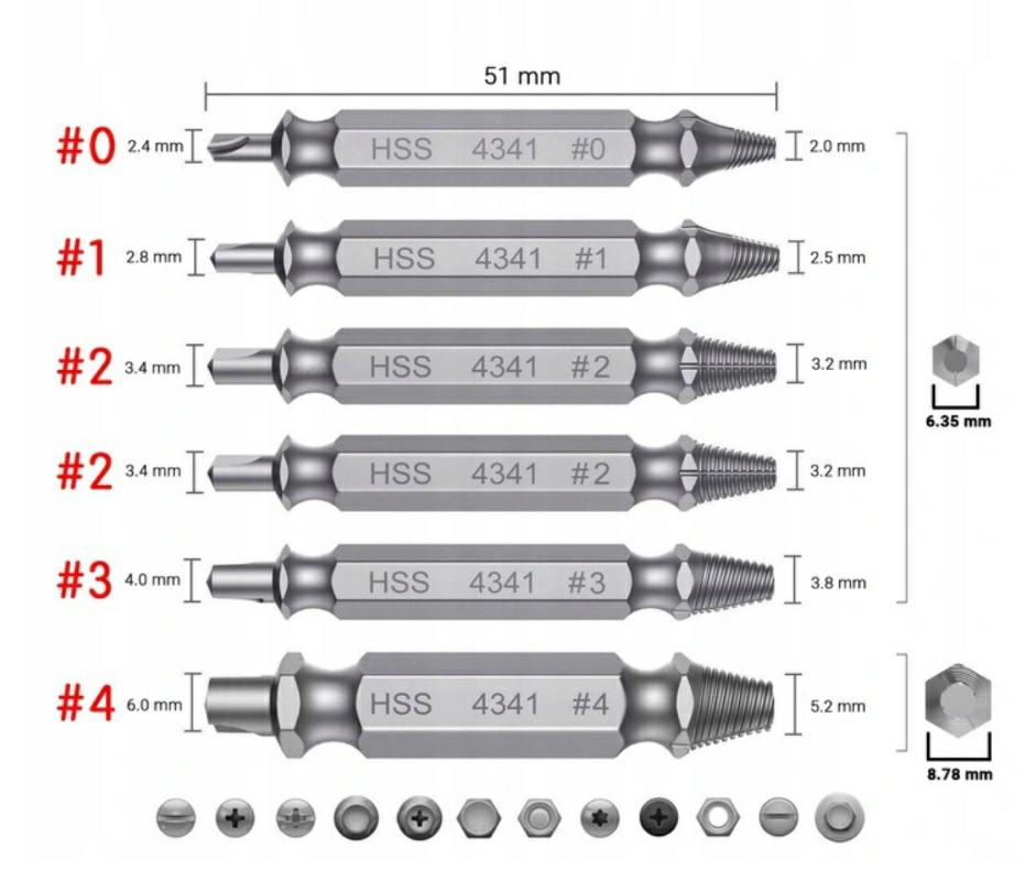 • KORPUS ZE STALI CHROMOWO-WANADOWEJ jest hartowany do 56 HRC w celu zapewnienia dużej wytrzymałości.