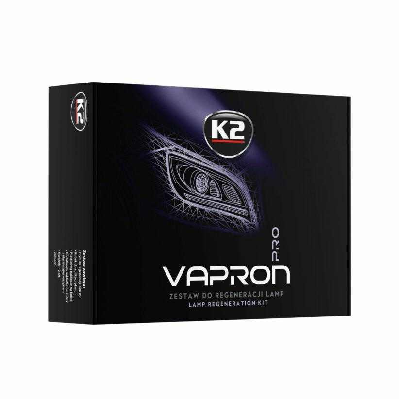 K2 Vapron to profesjonalny zestaw do regeneracji i zabezpieczenia zniszczonych lamp, popularnie nazywany „czajniczkiem do reflektorów” lub „magicznym czajniczkiem”. Doskonale nadaje się do odnawiania zniszczonych (zmatowiałych, pożółkłych) reflektorów, niezależnie od wieku samochodu i stopnia zniszczenia lamp.