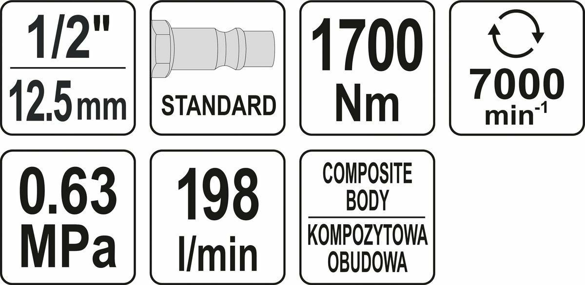 YATO KLUCZ UDAROWY PNEUMATYCZNY 1700Nm 1/2" 09544