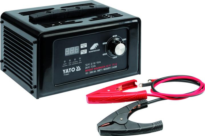 YATO PROSTOWNIK ELEKTRONICZNY ZE WSPOMAGANIEM ROZRUCHU 12V / 24V 15A MOKRY/AGM 83051