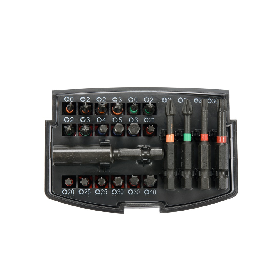 Zawierają funkcjonalne końcówki wykonane ze stali kwasoodpornej AISI S2 oraz adapter.